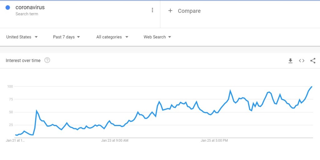 According to a Google search analysis on Google Trends, coronavirus began to increase in searches in the United States as the first case was confirmed.